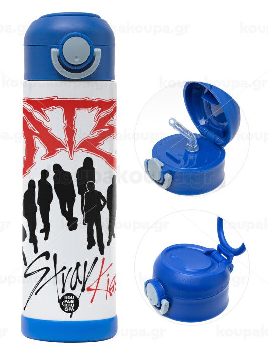 Stray Kids Boy band, Easter candle, Childrens hot water bottle, stainless steel, with safety straw, BLUE (500ml)
