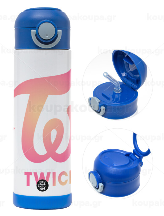 Twice, Easter candle, Childrens hot water bottle, stainless steel, with safety straw, BLUE (500ml)