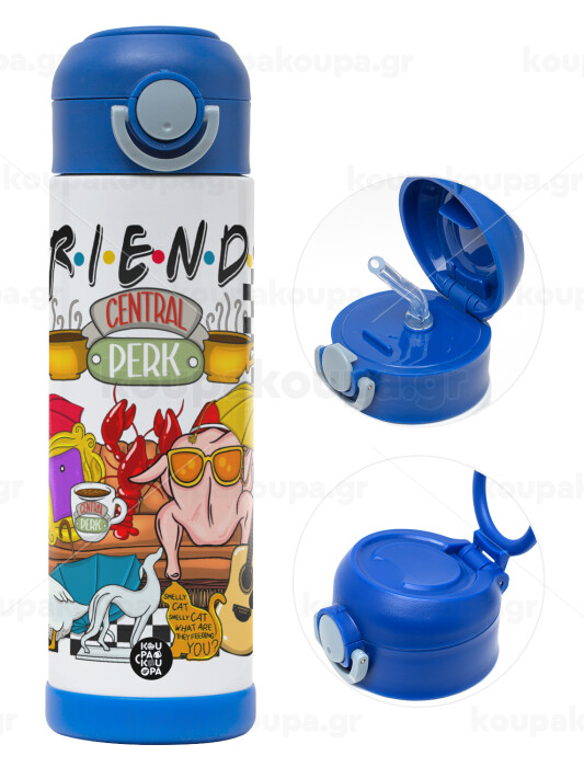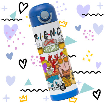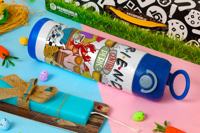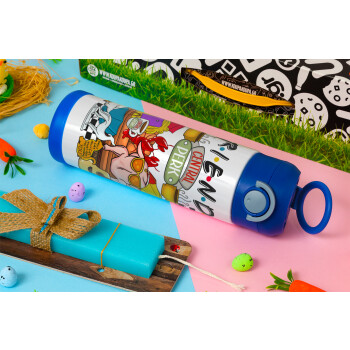 Friends, Easter candle, Childrens hot water bottle, stainless steel, with safety straw, BLUE (500ml)