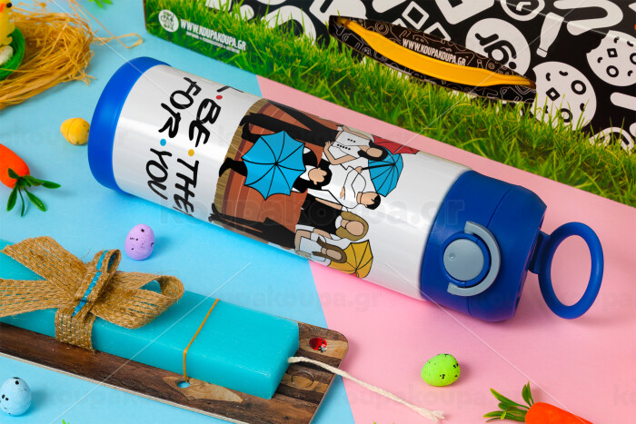 Friends cover, Easter candle, Childrens hot water bottle, stainless steel, with safety straw, BLUE (500ml)