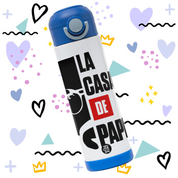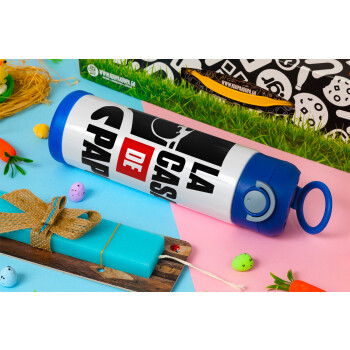 La casa de papel, Easter candle, Childrens hot water bottle, stainless steel, with safety straw, BLUE (500ml)