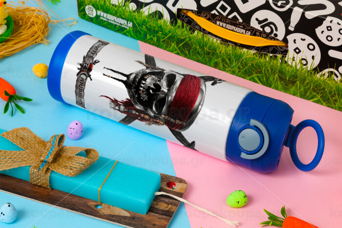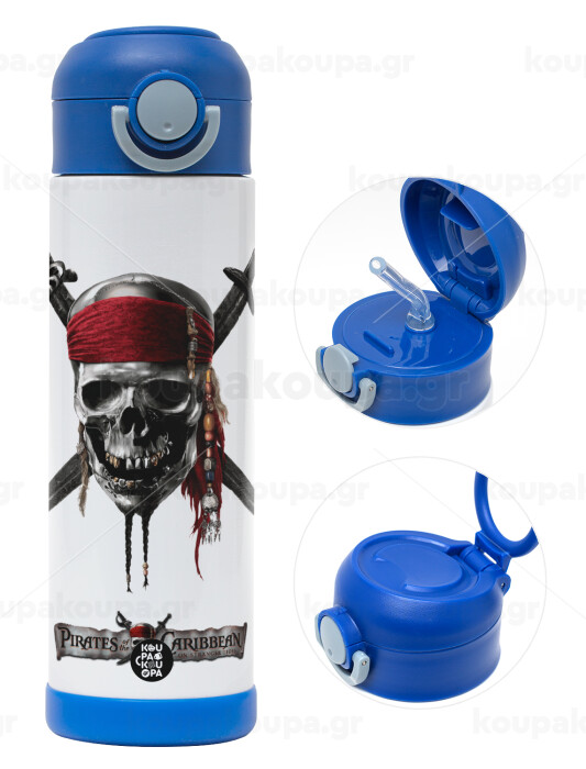 Pirates of the Caribbean, Easter candle, Childrens hot water bottle, stainless steel, with safety straw, BLUE (500ml)