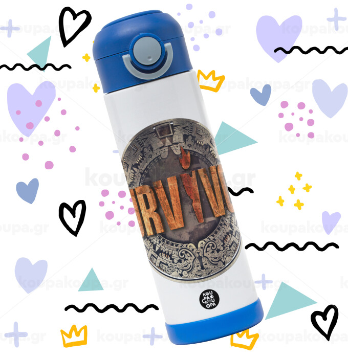 Survivor, Easter candle, Childrens hot water bottle, stainless steel, with safety straw, BLUE (500ml)
