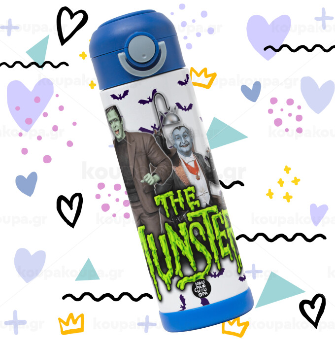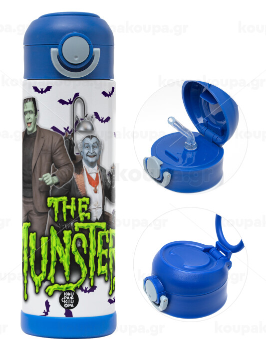 The munsters, Easter candle, Childrens hot water bottle, stainless steel, with safety straw, BLUE (500ml)