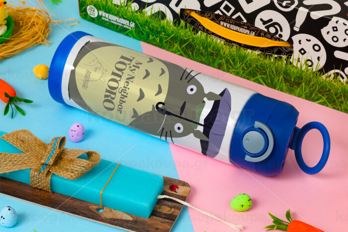 Totoro from My Neighbor Totoro, Easter candle, Childrens hot water bottle, stainless steel, with safety straw, BLUE (500ml)