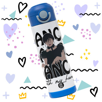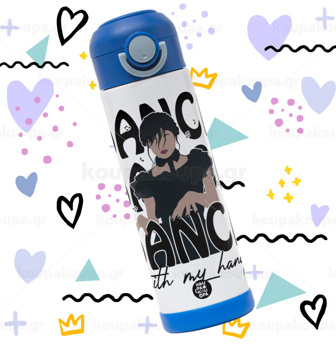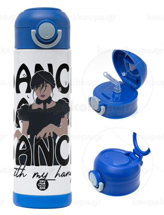 Wednesday dance dance dance, Easter candle, Childrens hot water bottle, stainless steel, with safety straw, BLUE (500ml)
