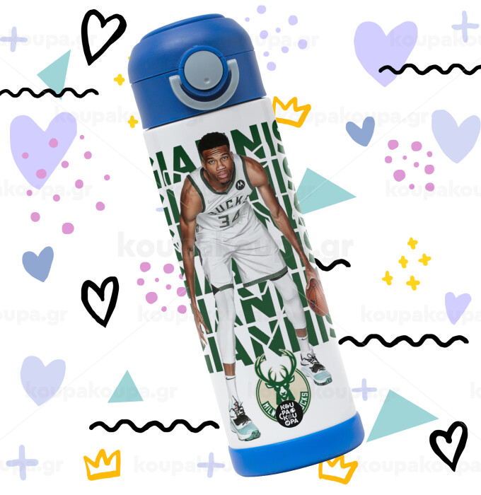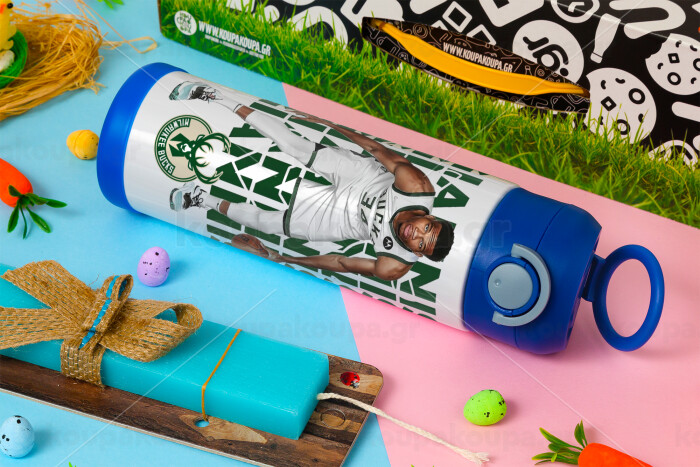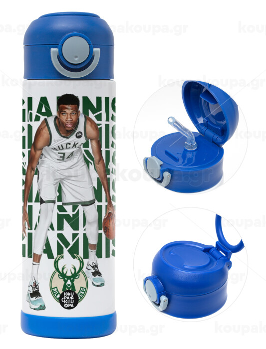 Giannis Antetokounmpo, Easter candle, Childrens hot water bottle, stainless steel, with safety straw, BLUE (500ml)