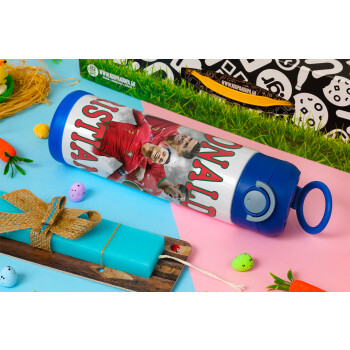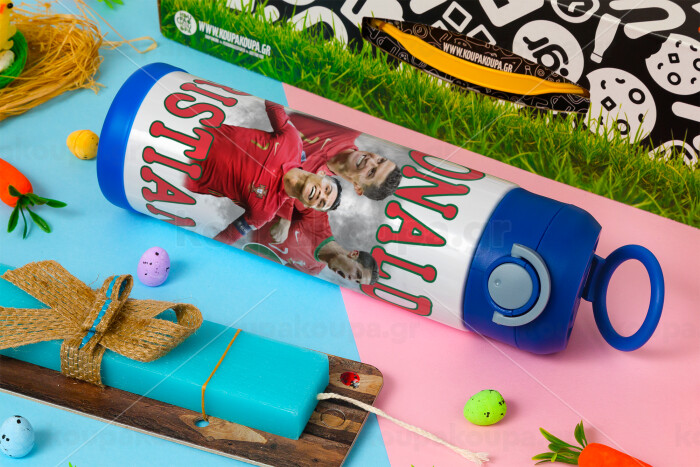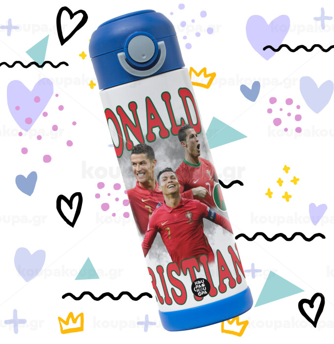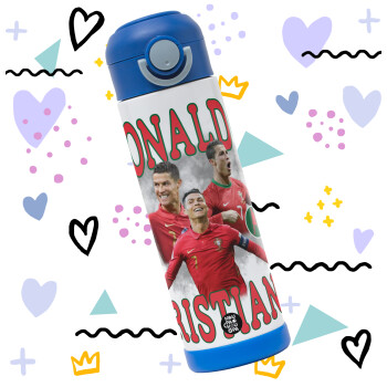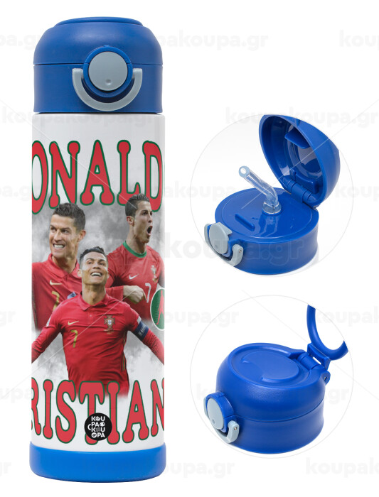 Cristiano Ronaldo, Easter candle, Childrens hot water bottle, stainless steel, with safety straw, BLUE (500ml)