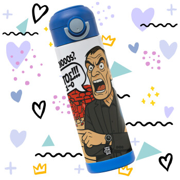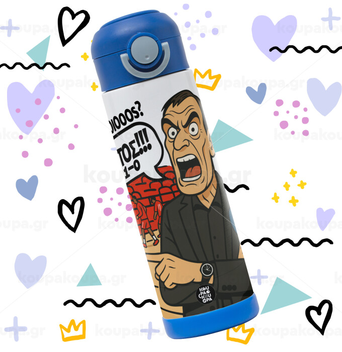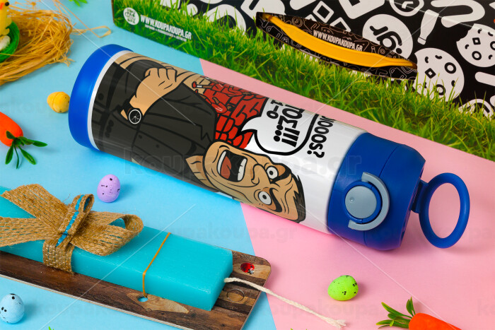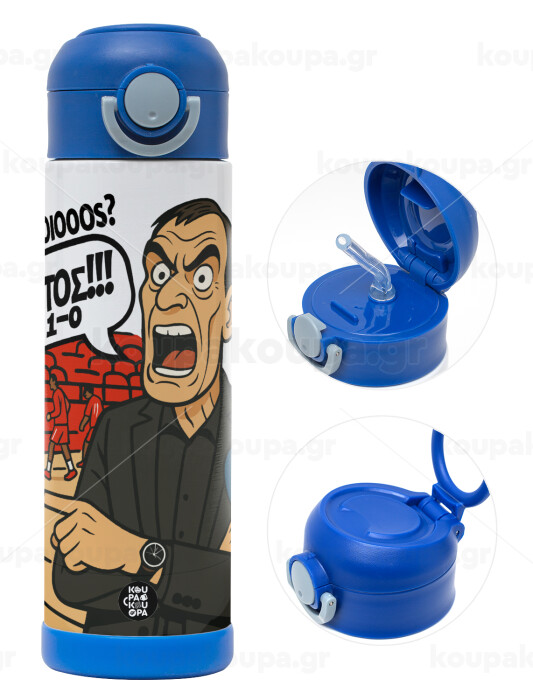 Μπαρτζό, Ποιος? Αυτός!!! 1-0, Easter candle, Childrens hot water bottle, stainless steel, with safety straw, BLUE (500ml)