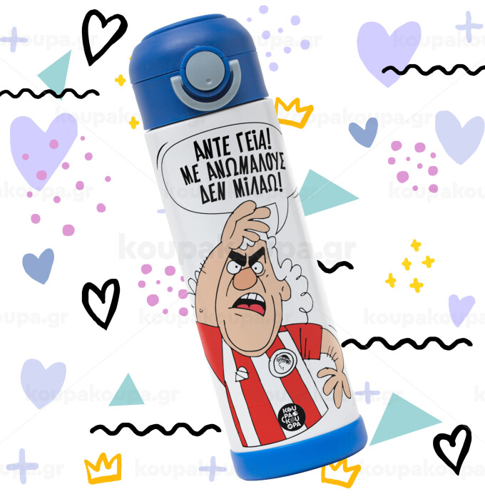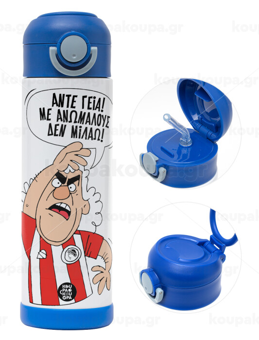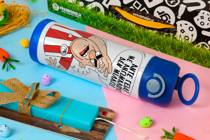 Τάκης, Άντε γεια, με ανώμαλους δεν μιλάω!, Easter candle, Childrens hot water bottle, stainless steel, with safety straw, BLUE (500ml)