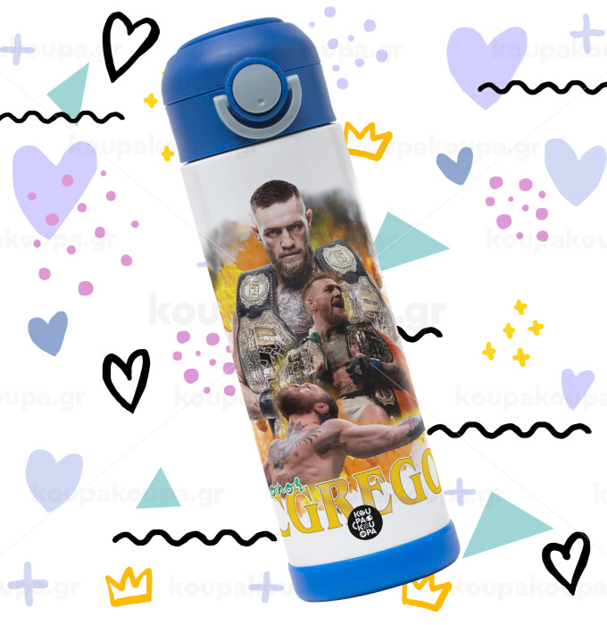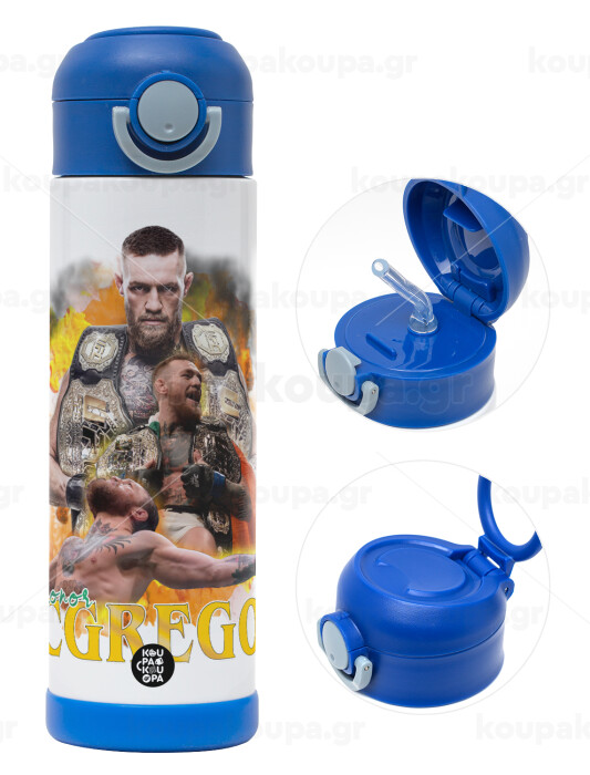 Conor McGregor Notorious, Easter candle, Childrens hot water bottle, stainless steel, with safety straw, BLUE (500ml)