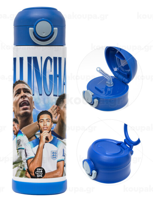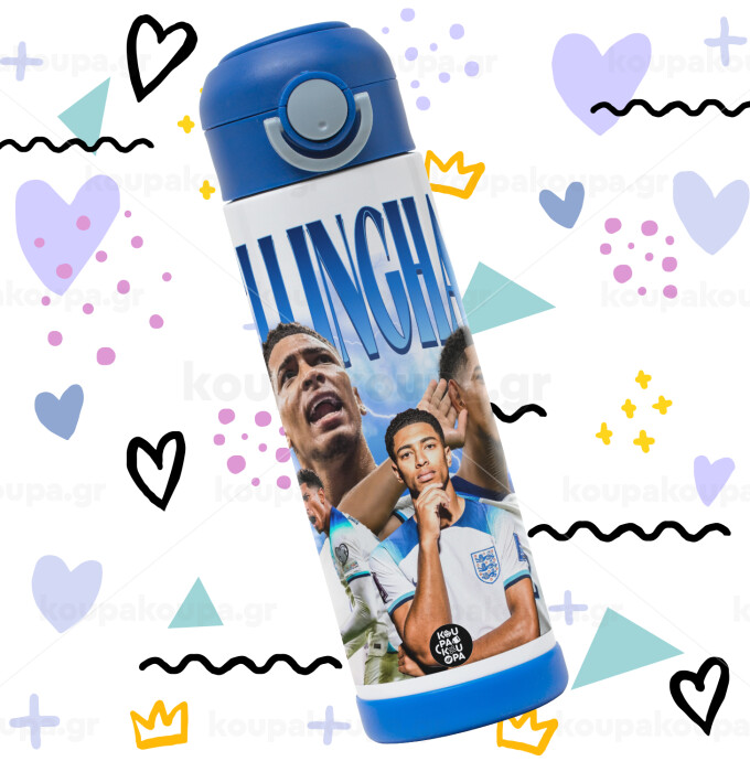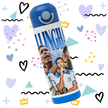 Jude Bellingham, Easter candle, Childrens hot water bottle, stainless steel, with safety straw, BLUE (500ml)