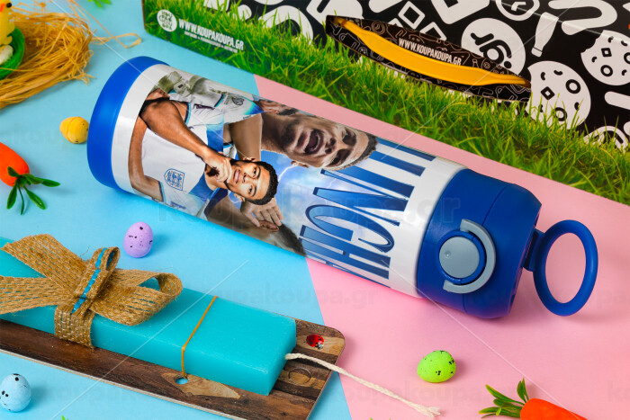 Ανοξείδωτο Θερμό Μπουκάλι για Παιδιά - Η Ασφαλής και Πράσινη Επιλογή! Τέλος τα πλαστικά μπουκάλια! Παρουσιάζουμε το απόλυτο μπουκάλι θερμό για τα παιδιά σας! Κατασκευασμένο από ανοξείδωτο ατσάλι, το μπουκάλι μας χωράει 500ml υγρό και είναι ιδανικό για το σχολείο και τις υπαίθριες δραστηριότητες. Με το απαλό άκρο, οι μικροί μας φίλοι μπορούν να πίνουν κατευθείαν από το μπουκάλι χωρίς καλαμάκι. Το ευρύ άνοιγμα του μας επιτρέπει να το καθαρίσουμε εύκολα για άψογη υγιεινή! Λαβή για εύκολη μεταφορά, καπάκι βιδωτό για ασφάλεια και λαβή για άνετο κράτημα. Επίσης, το μπουκάλι μας είναι BPA FREE, διατηρεί το πόσιμο δροσερό και δροσιστικό έξω από το ψυγείο. Κάντε την πράσινη επιλογή για τα παιδιά σας! Προμηθευτείτε το δικό σας ανοξείδωτο θερμό μπουκάλι τώρα!