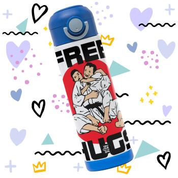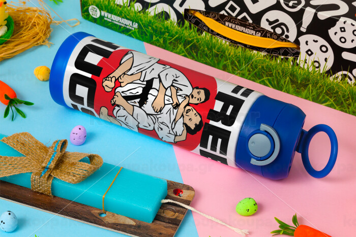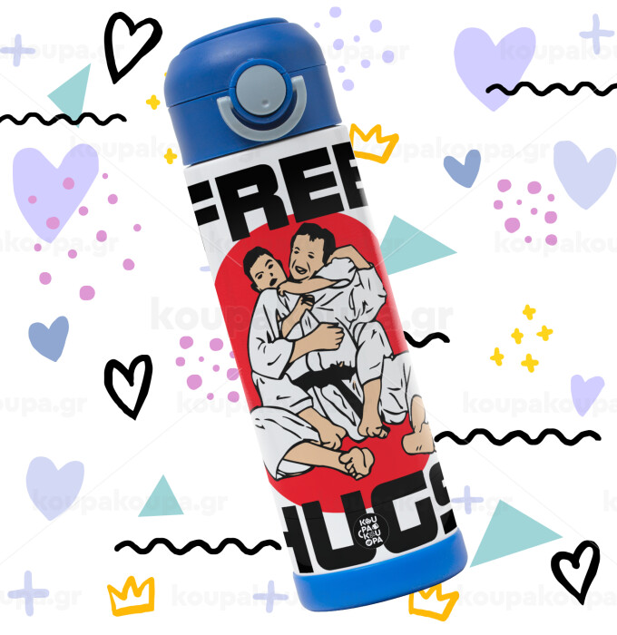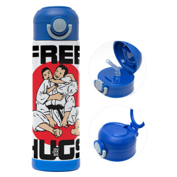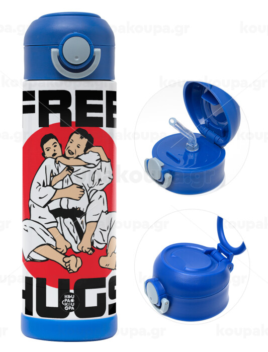 JUDO free hugs, Easter candle, Childrens hot water bottle, stainless steel, with safety straw, BLUE (500ml)