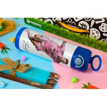 Lionel Messi inter miami jersey, Easter candle, Childrens hot water bottle, stainless steel, with safety straw, BLUE (500ml)