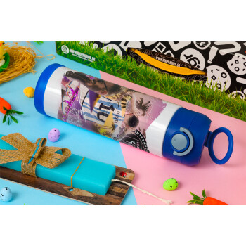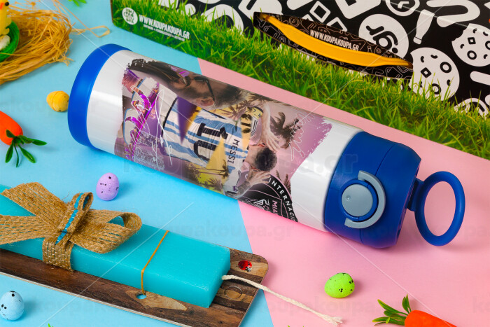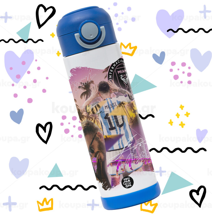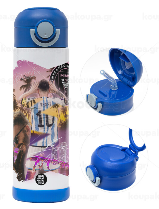 Lionel Messi Miami, Easter candle, Childrens hot water bottle, stainless steel, with safety straw, BLUE (500ml)