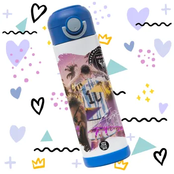 Lionel Messi Miami, Easter candle, Childrens hot water bottle, stainless steel, with safety straw, BLUE (500ml)