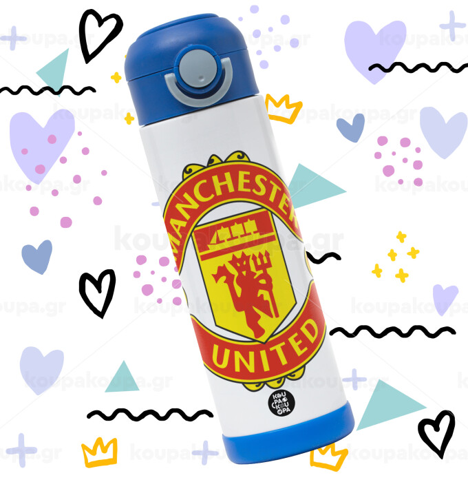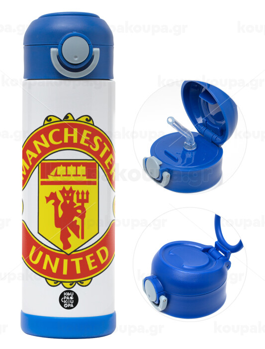 Manchester United F.C., Easter candle, Childrens hot water bottle, stainless steel, with safety straw, BLUE (500ml)