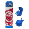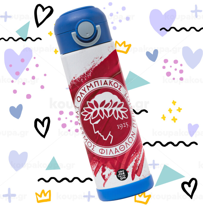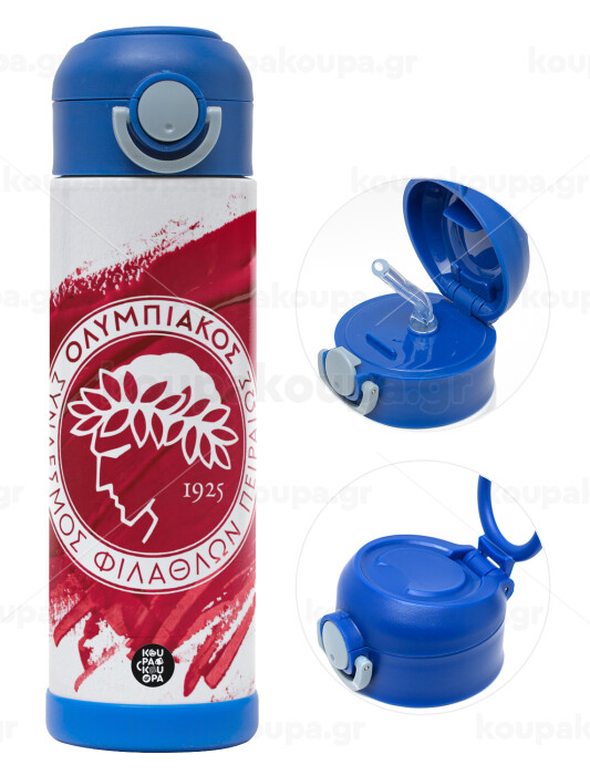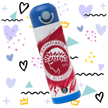 Olympiacos F.C., Easter candle, Childrens hot water bottle, stainless steel, with safety straw, BLUE (500ml)