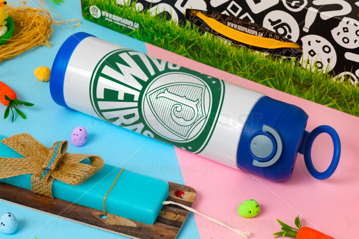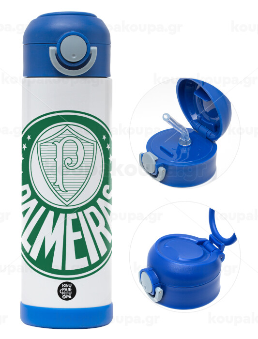 Palmeiras, Easter candle, Childrens hot water bottle, stainless steel, with safety straw, BLUE (500ml)