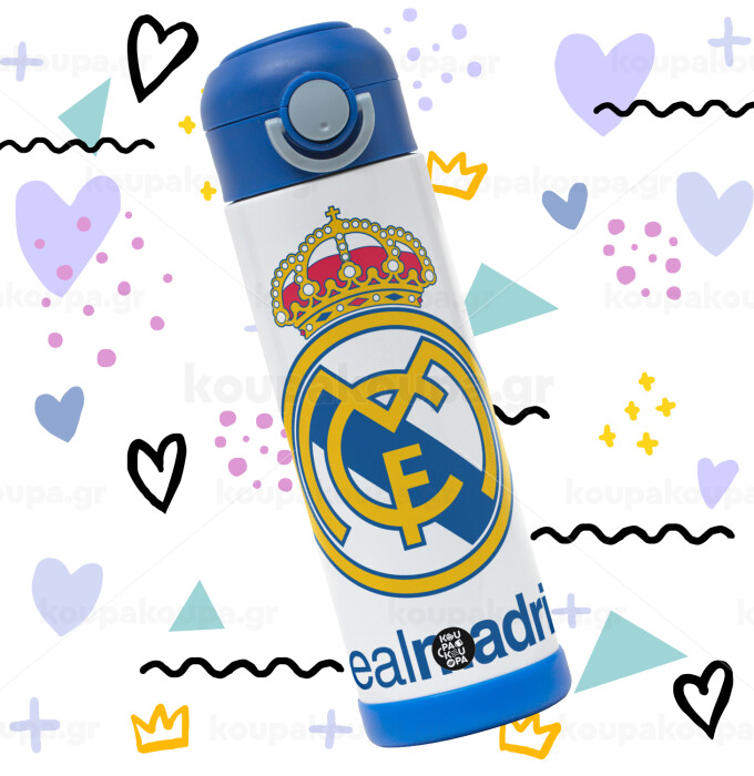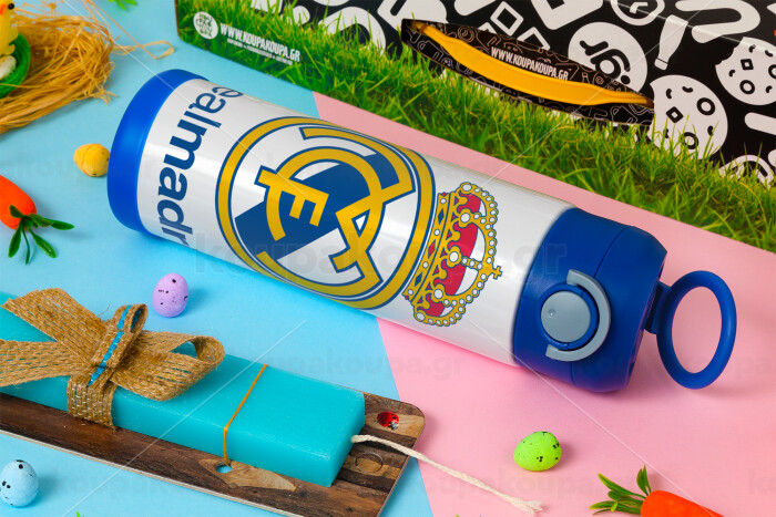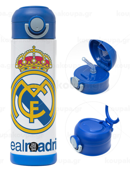Real Madrid CF, Easter candle, Childrens hot water bottle, stainless steel, with safety straw, BLUE (500ml)
