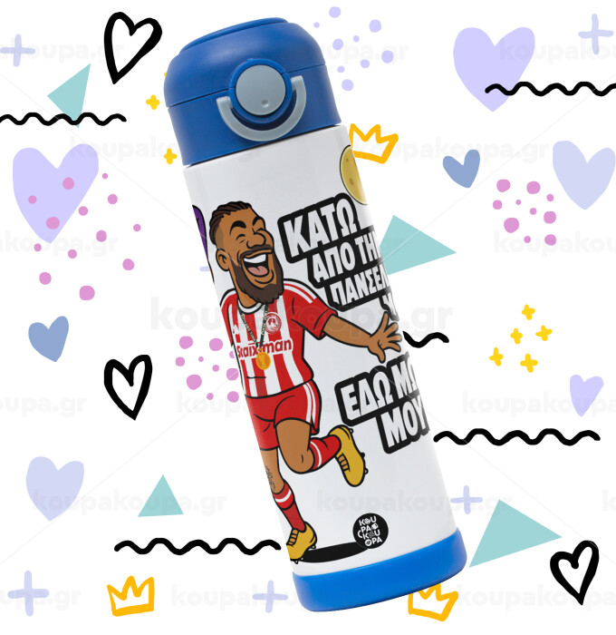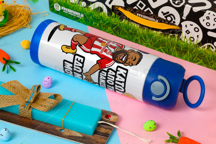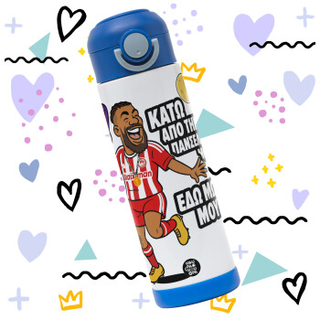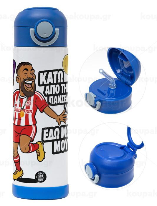 Ροντινέι, "ΚΑΤΩ ΑΠΟ ΤΗΝ ΠΑΝΣΕΛΗΝΟ ΜΟΥ!", Easter candle, Childrens hot water bottle, stainless steel, with safety straw, BLUE (500ml)