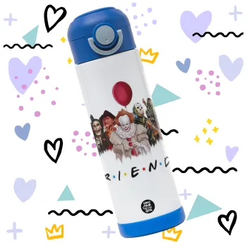 Halloween Friends, Easter candle, Childrens hot water bottle, stainless steel, with safety straw, BLUE (500ml)