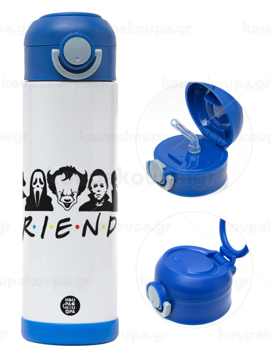 Halloween Friends, Easter candle, Childrens hot water bottle, stainless steel, with safety straw, BLUE (500ml)