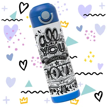 All you need is love, Easter candle, Childrens hot water bottle, stainless steel, with safety straw, BLUE (500ml)