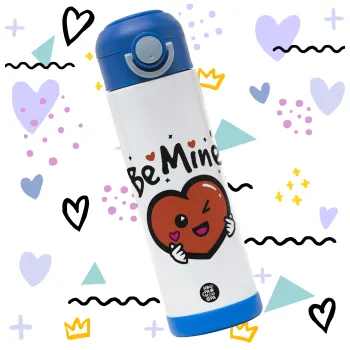 Be mine!, Easter candle, Childrens hot water bottle, stainless steel, with safety straw, BLUE (500ml)