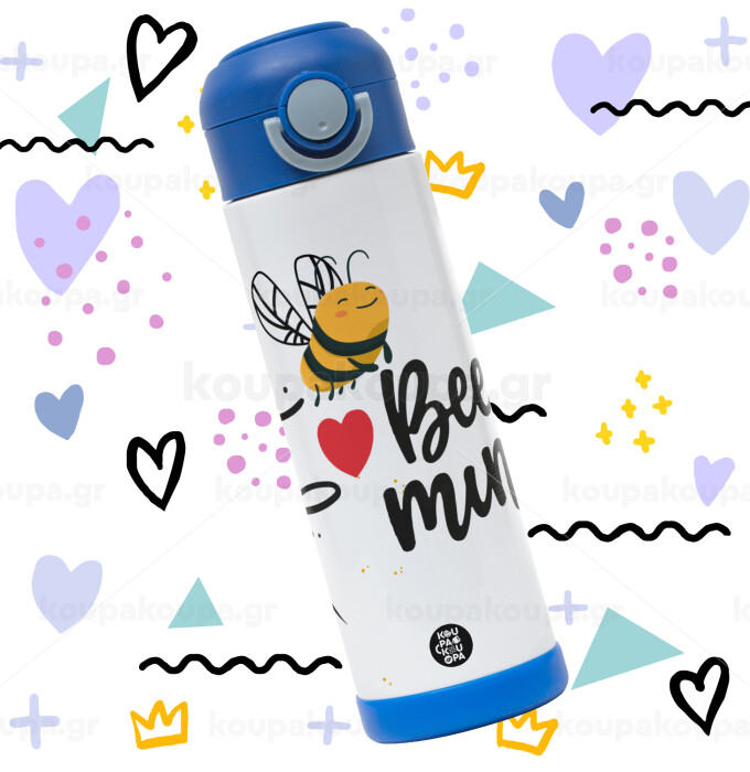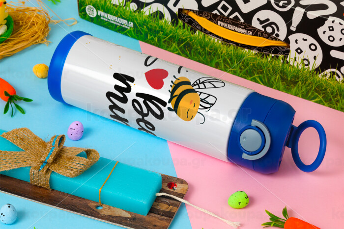 Bee mine!!!, Easter candle, Childrens hot water bottle, stainless steel, with safety straw, BLUE (500ml)