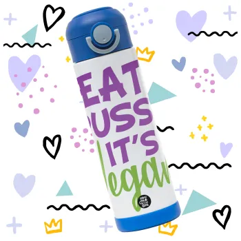 EAT pussy it's vegan, Easter candle, Childrens hot water bottle, stainless steel, with safety straw, BLUE (500ml)