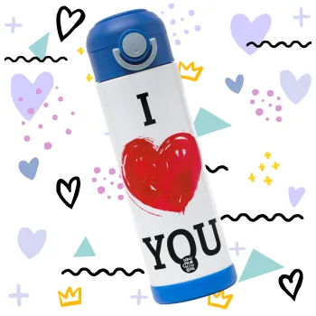 I Love You, Easter candle, Childrens hot water bottle, stainless steel, with safety straw, BLUE (500ml)