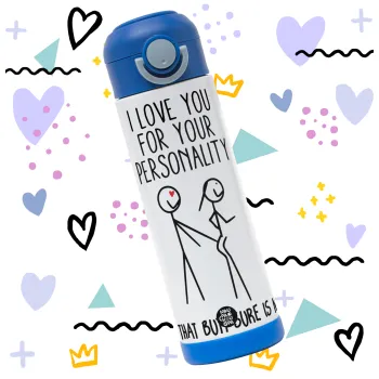 I Love you for your personality, Easter candle, Childrens hot water bottle, stainless steel, with safety straw, BLUE (500ml)