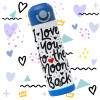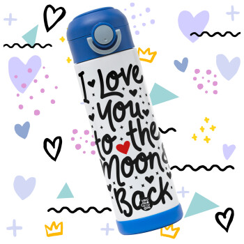 I love you to the moon and back with hearts, Easter candle, Childrens hot water bottle, stainless steel, with safety straw, BLUE (500ml)