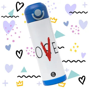 IT Lov(s)er, Easter candle, Childrens hot water bottle, stainless steel, with safety straw, BLUE (500ml)