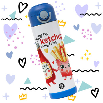 Ketchup To My Fries, Easter candle, Childrens hot water bottle, stainless steel, with safety straw, BLUE (500ml)