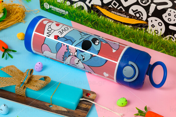 Lilo & Stitch Love, Easter candle, Childrens hot water bottle, stainless steel, with safety straw, BLUE (500ml)
