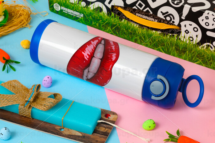 Lips, Easter candle, Childrens hot water bottle, stainless steel, with safety straw, BLUE (500ml)
