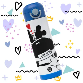 Love Car, Easter candle, Childrens hot water bottle, stainless steel, with safety straw, BLUE (500ml)