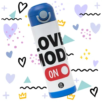 LOVE MODE ON, Easter candle, Childrens hot water bottle, stainless steel, with safety straw, BLUE (500ml)