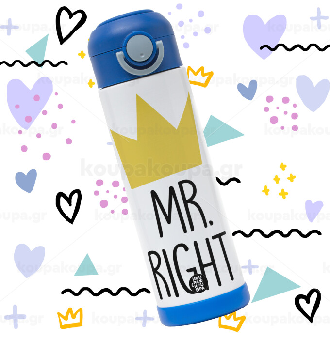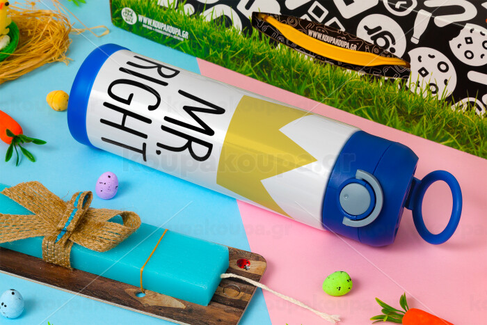 Mr right, Easter candle, Childrens hot water bottle, stainless steel, with safety straw, BLUE (500ml)