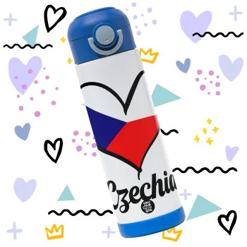 Czechia flag, Easter candle, Childrens hot water bottle, stainless steel, with safety straw, BLUE (500ml)