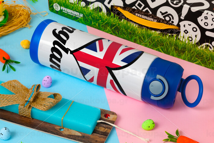 England flag, Easter candle, Childrens hot water bottle, stainless steel, with safety straw, BLUE (500ml)