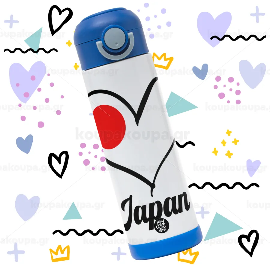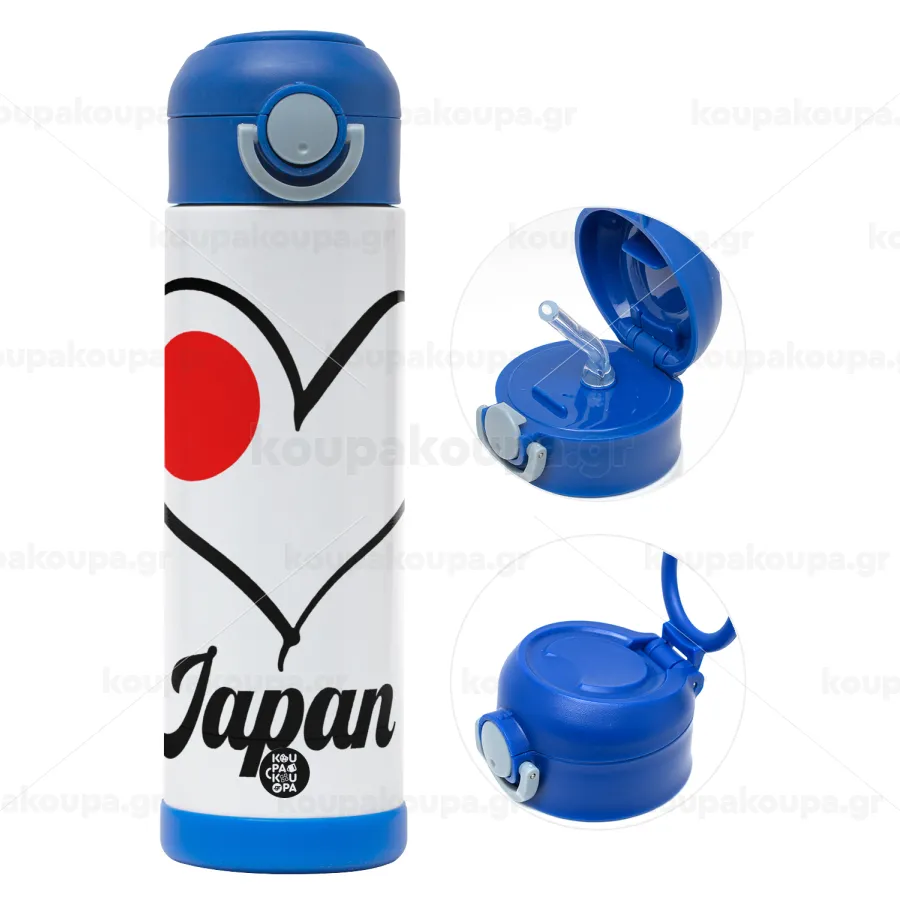 Japan flag, Easter candle, Childrens hot water bottle, stainless steel, with safety straw, BLUE (500ml)