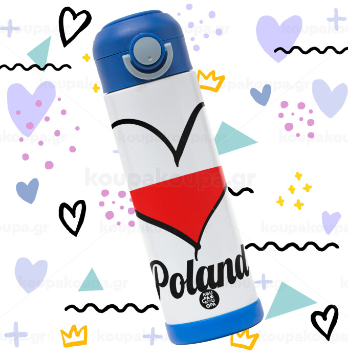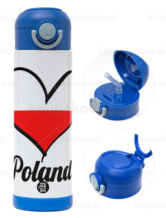 Poland flag, Easter candle, Childrens hot water bottle, stainless steel, with safety straw, BLUE (500ml)