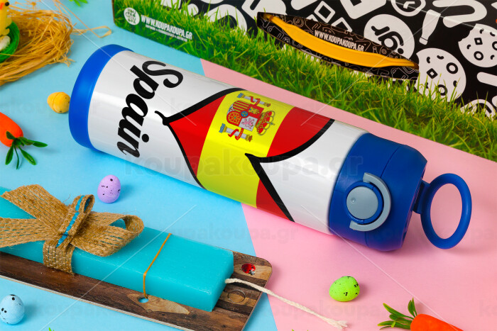 Spain flag, Easter candle, Childrens hot water bottle, stainless steel, with safety straw, BLUE (500ml)