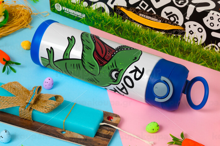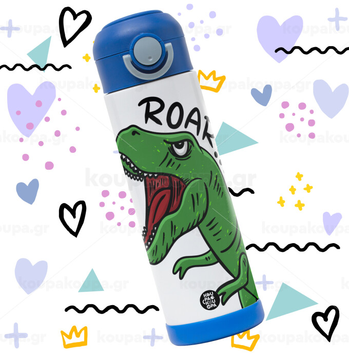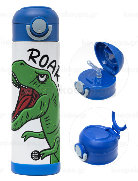 Dyno roar!!!, Easter candle, Childrens hot water bottle, stainless steel, with safety straw, BLUE (500ml)