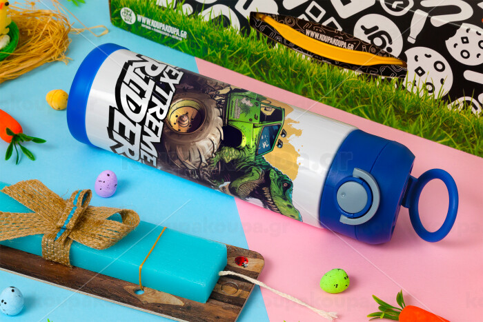 Extreme rider Dyno, Easter candle, Childrens hot water bottle, stainless steel, with safety straw, BLUE (500ml)