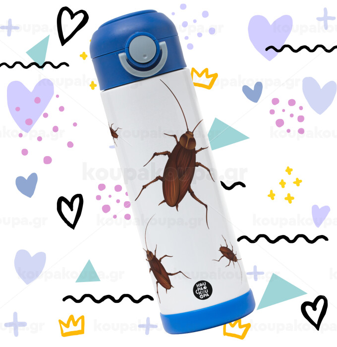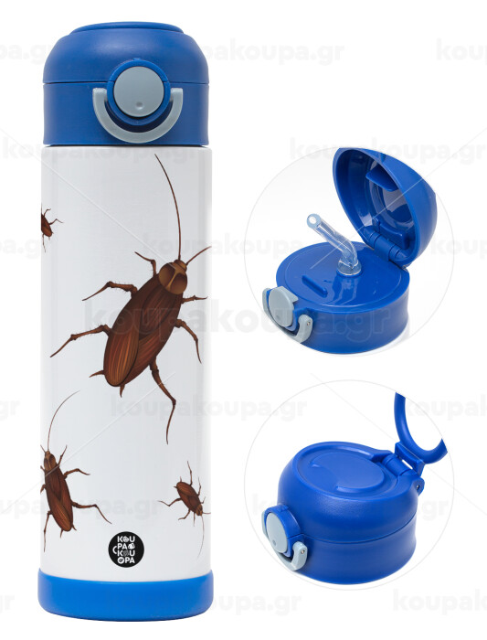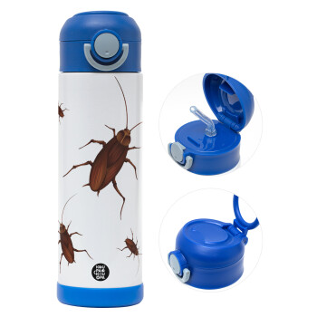 Blattodea, Easter candle, Childrens hot water bottle, stainless steel, with safety straw, BLUE (500ml)